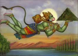 setting fire to Ravan's city with his burning tail and extinguishes his